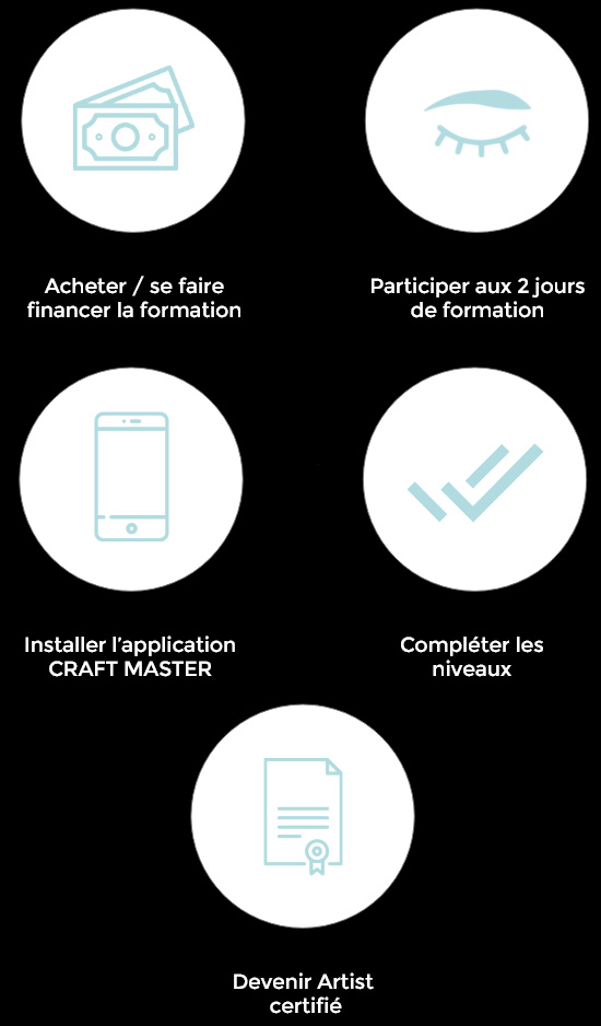 Craft Master est une application d’enseignement à distance. C’est comme si vous étiez en salle de classe grâce aux échanges très régulier avec la Grand Master Chems. Elle vous aidera à avancer dans votre formation jusqu’à être diplômé Artiste PowderBrows.